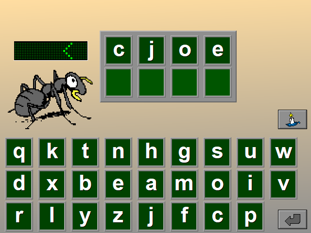 Alfabet is a letter grouping program. The program offers several different activities for arranging letters in order and one activity for looking up words in a dictionary. There are two levels of difficulty. On screen help is available.